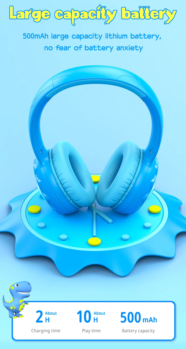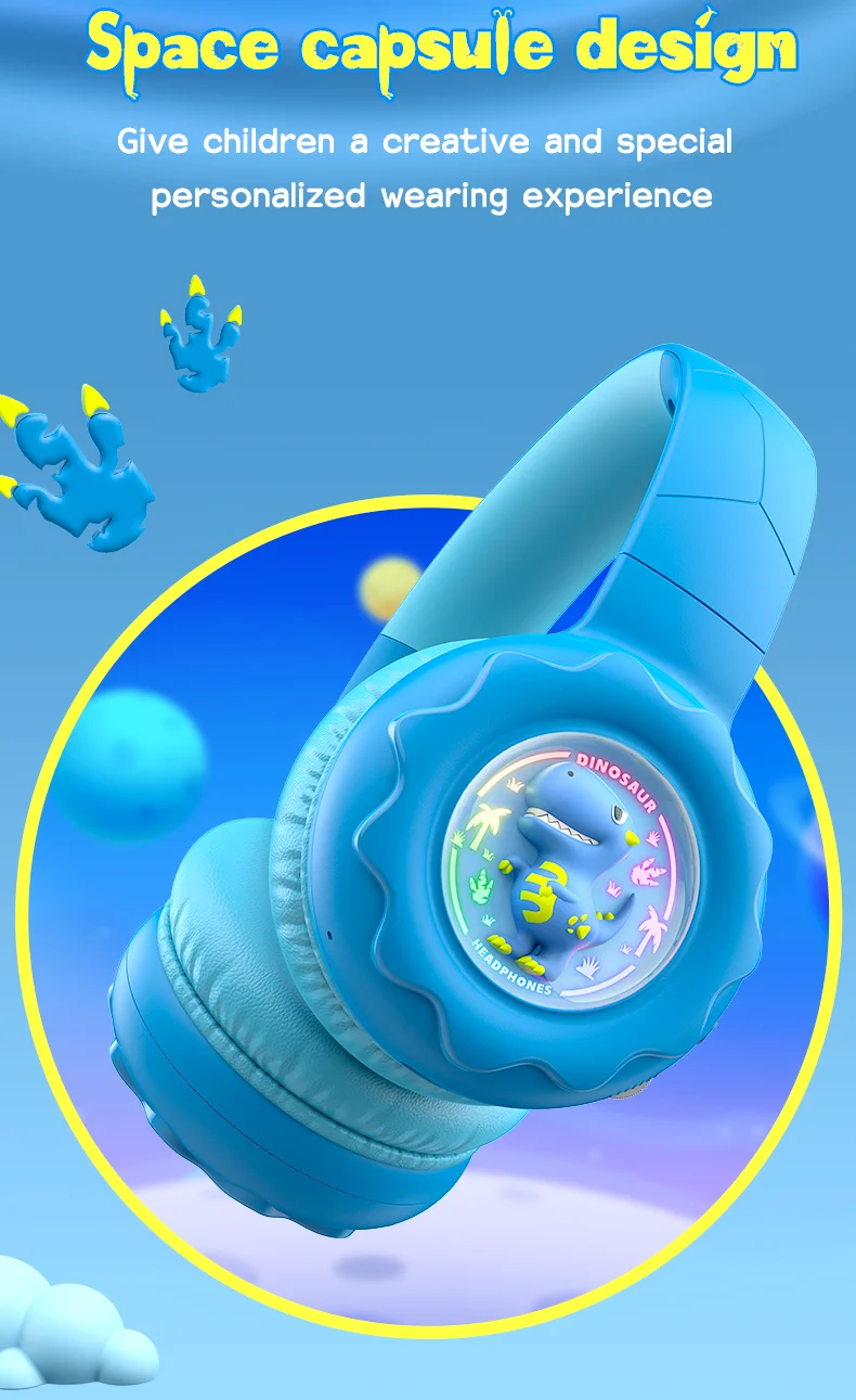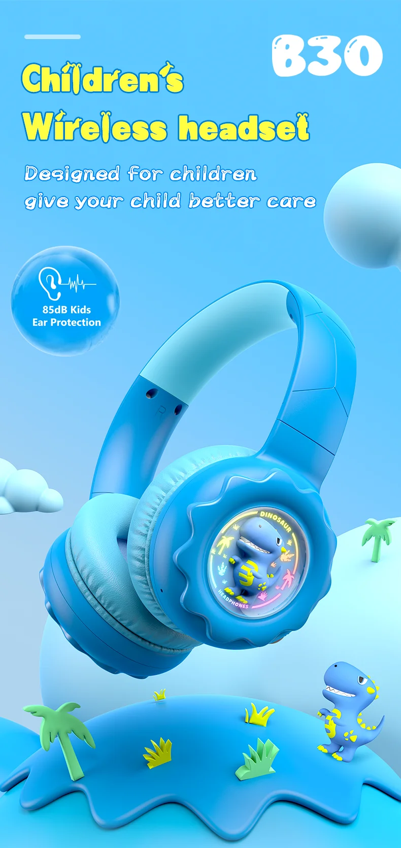 Protect young ears while sparking imagination! These adorable dinosaur-themed over-ear headphones deliver engaging wireless sound up to a child-safe limit of 85 dB, making them ideal for curious kids who love listening, streaming, or gaming. Whether Bluetooth-enabled or connected via 3.5 mm audio cable, the B30 offers flexible dual-mode use for tablets, phones, or PCs, plus a built-in mic for online calls and remote learning.