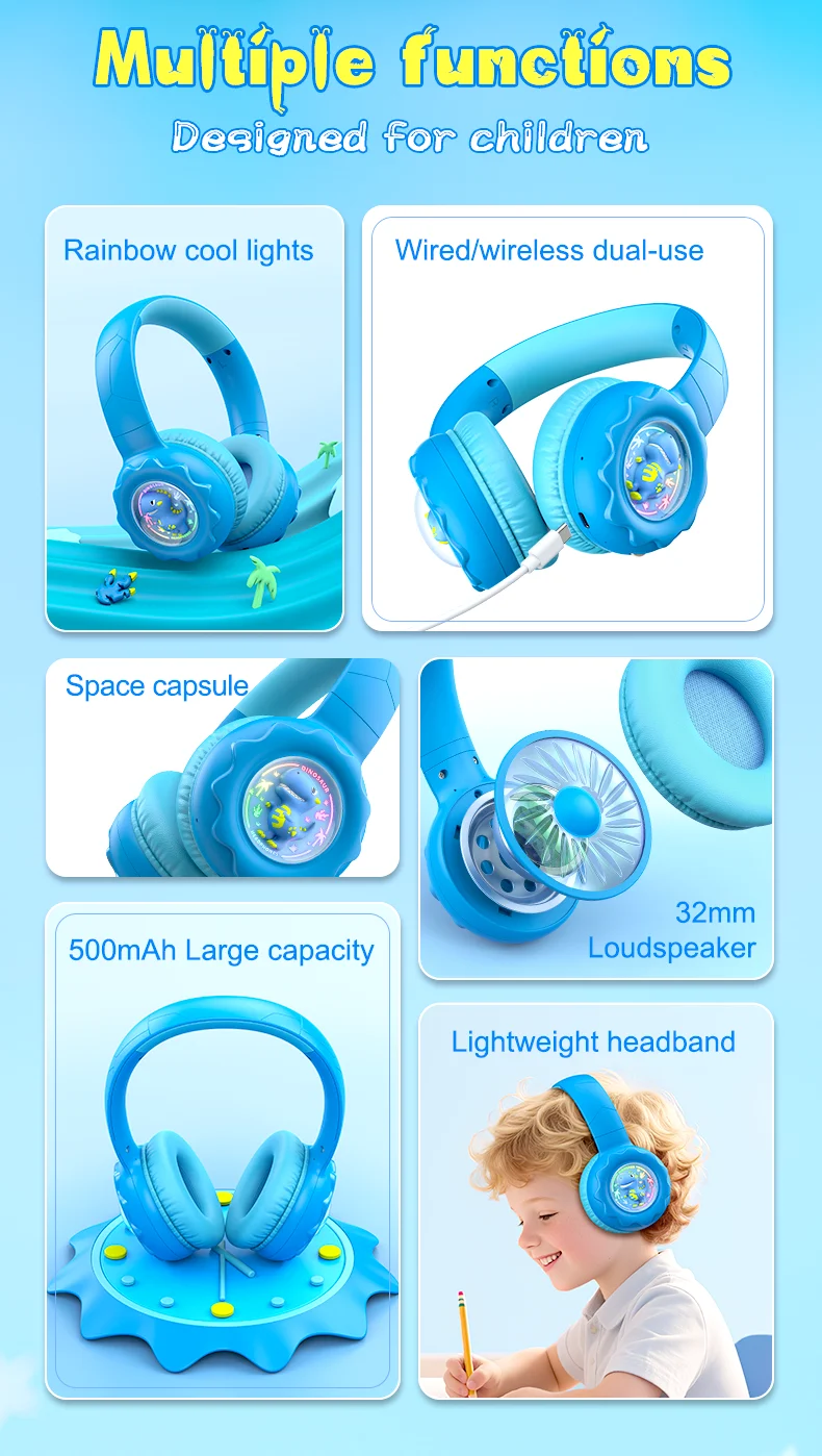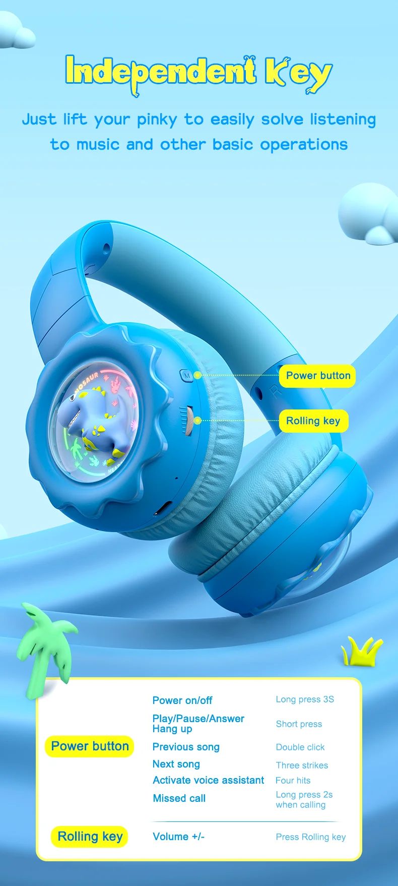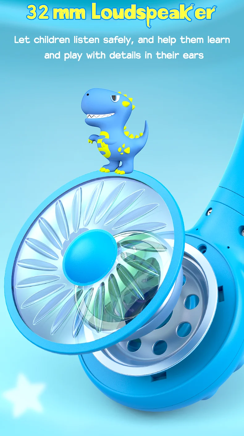 Protect young ears while sparking imagination! These adorable dinosaur-themed over-ear headphones deliver engaging wireless sound up to a child-safe limit of 85 dB, making them ideal for curious kids who love listening, streaming, or gaming. Whether Bluetooth-enabled or connected via 3.5 mm audio cable, the B30 offers flexible dual-mode use for tablets, phones, or PCs, plus a built-in mic for online calls and remote learning.