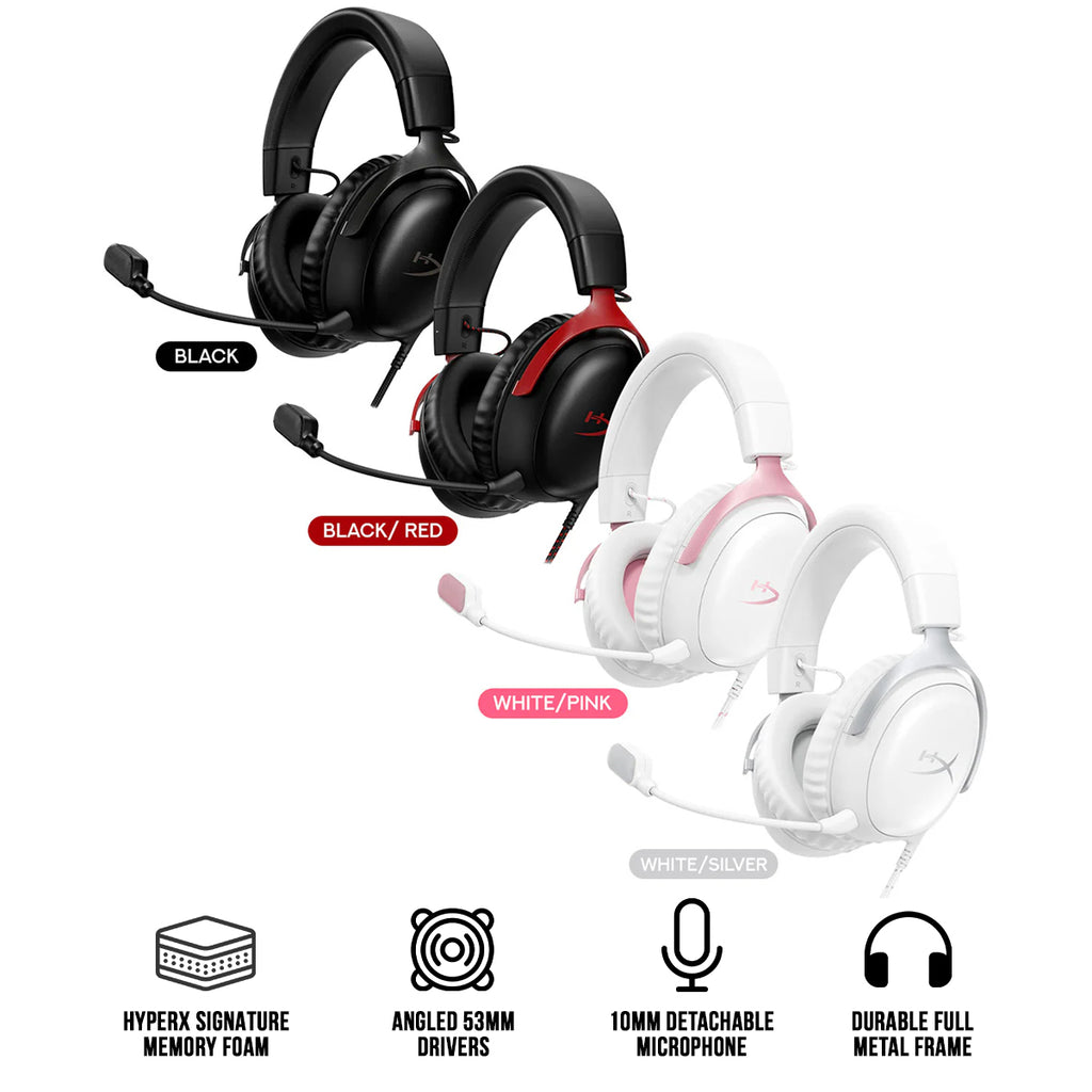 The HyperX Cloud III is an evolution of our legendary Cloud II, which is known for its comfort, sound quality, and durability. With plush HyperX signature memory foam in the headband and ear cushions, it provides a comfortable fit perfect for long gaming sessions. It also features new, retuned 53mm drivers that are angled for an optimal listening experience. The upgraded 10mm microphone captures crystal clear in-game voice chat and calls. Simple controls on the headset earcup allow you to have quick, direct access to mute your mic or adjust audio volume. The LED mic mute clearly shows when you’re muted. Compatible with PC, PS5, PS4, Xbox Series X|S, Xbox One, Nintendo Switch, Mac, and Mobile. Experience ultimate comfort and sound across your favorite platforms.
