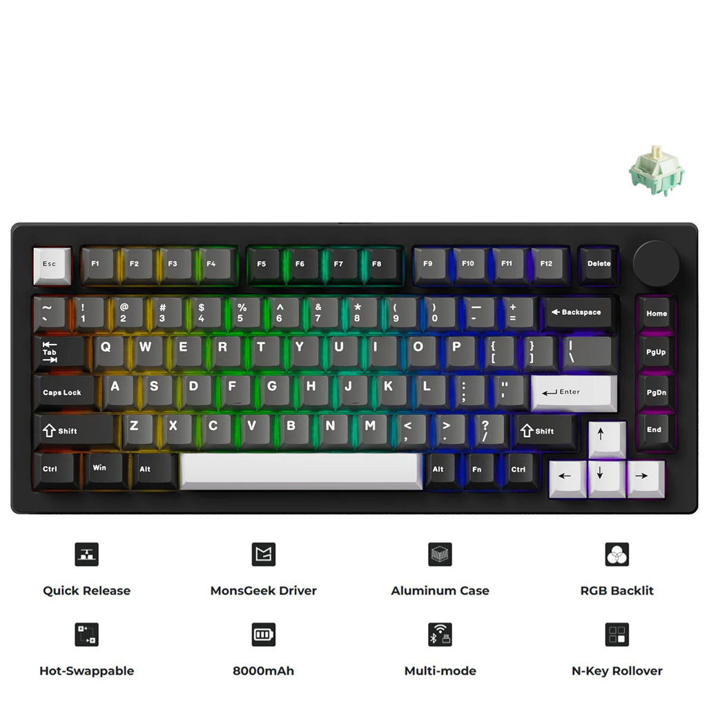 Introducing the M1 V5 Black & Silver: a 75% multi-mode custom mechanical keyboard with Quick-Release Ball-Catch Screwless Fastening for tool-free assembly and disassembly of the top and bottom cases, making customization effortless. Additional highlights include: 8000mAh battery for long-la...