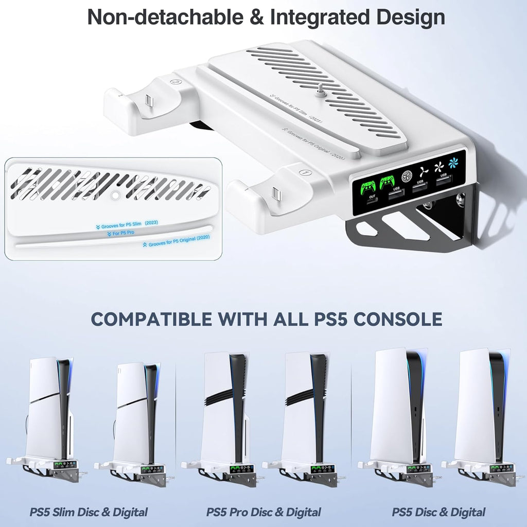 - Fit for PS5/PS5 Slim/PS5 Pro Disc & Digital - The PS5 wall mount kit with charging is compatible with PS5 slim/PS5 Pro and PS5 console disc & digital version which is exclusively customized to wall mounting. The non-detachable & integrated design can simplify installation steps. As someone with limited space, this PS5 slim mount has been a lifesaver.