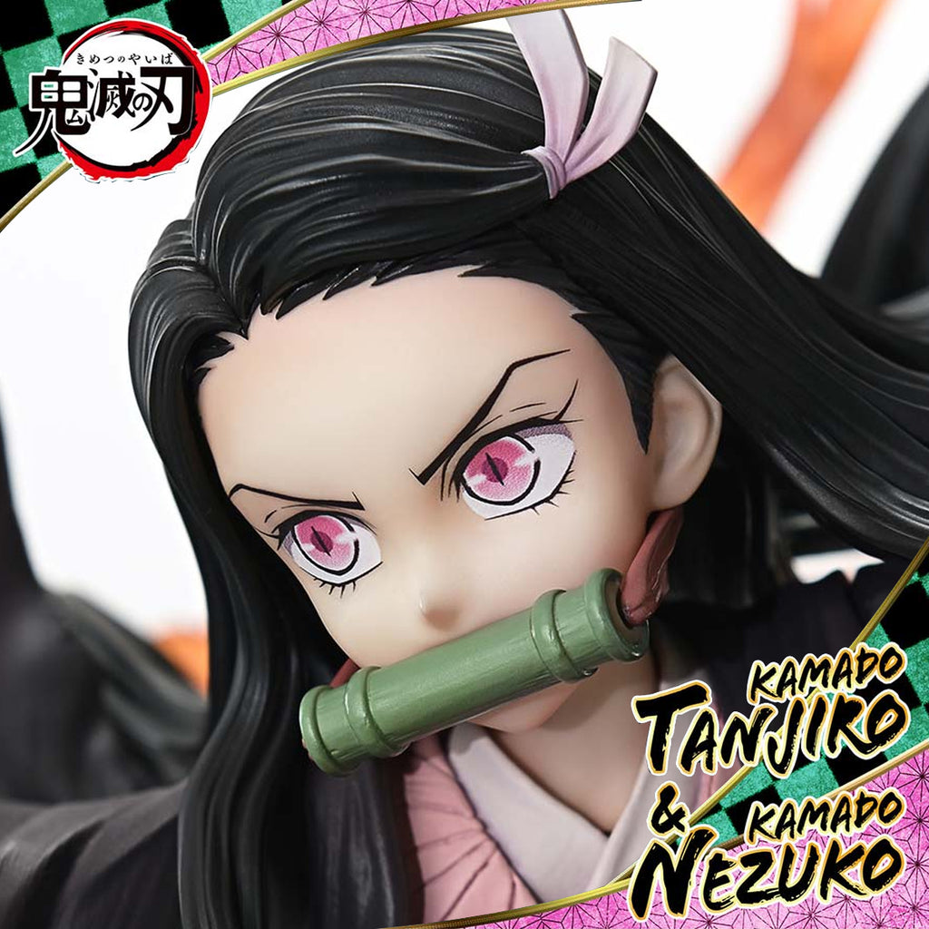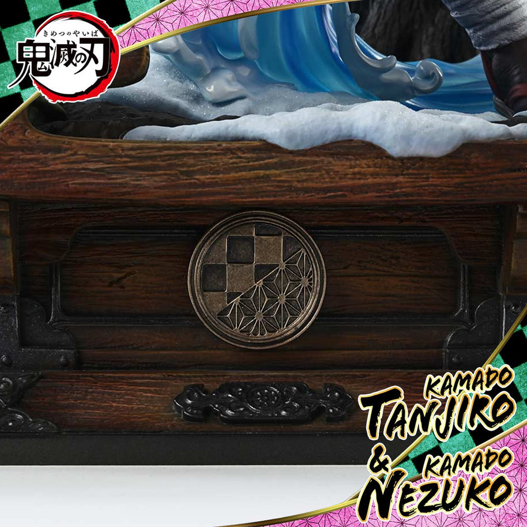 Every sculpted detail and every layer of paint merges the impression of the anime with the tangible qualities of three-dimensional form. The portraits of both Tanjiro and Nezuko are intricately crafted to convey their dignified presence while retaining the gentle softness of their youth. Their flowing haori and kimono are carefully sculpted with iconic patterns, painted with a "2.5D" approach that preserves the anime aesthetic. The breathing effect, finished in beautiful water tones, along with the heavy realism of wood and steel on the base, showcase the craftsmanship invested in every element.
