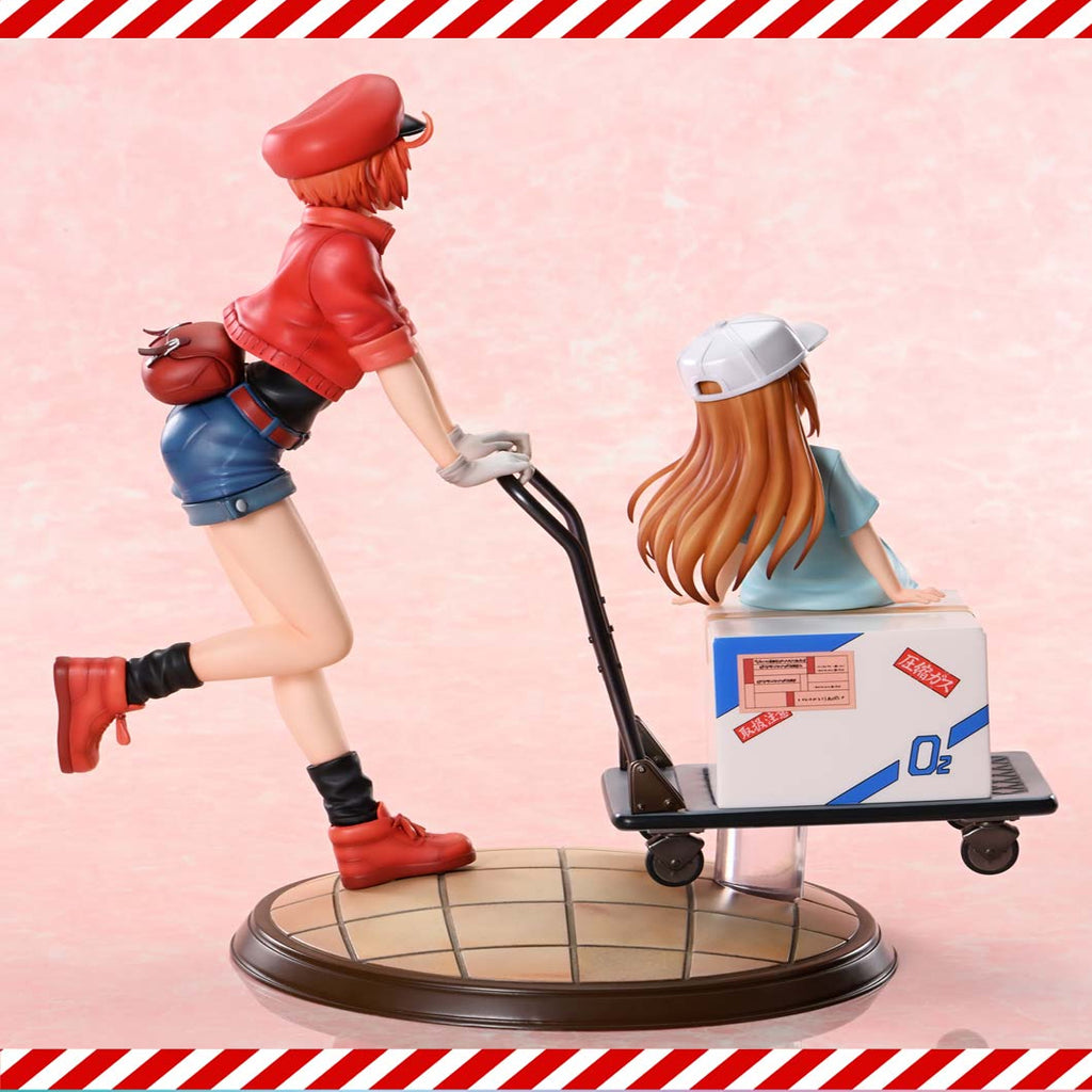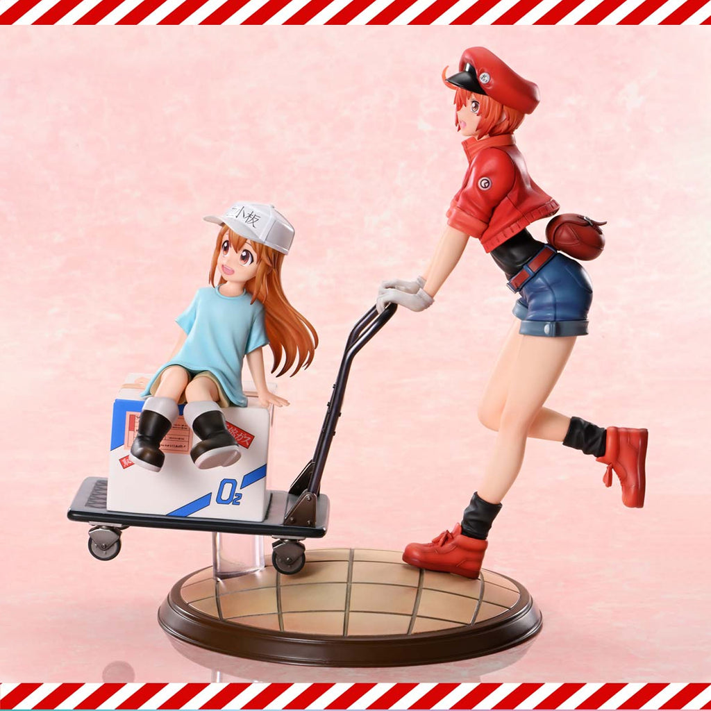 While fulfilling their respective roles, Red Blood Cell and Platelet work together to maintain peace within the body. Their charming and heartwarming everyday lives are captured in this dynamic and detailed figure. From the slim proportions showcasing a red jacket and denim shorts, to the flowing brown hair and playful legs bouncing on the cart, every movement and detail has been meticulously crafted. The vibrant colors and delicate sculpting bring the essence of the anime to life. From their bright, forward-looking expressions to the box of compressed O2 gas, every element tells a story from within the body.