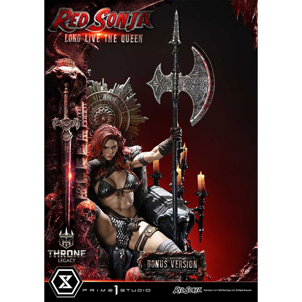 Created to commemorate the 50th anniversary of the character’s debut, this official artwork by Ian MacDonald inspired the 1/3 scale statue titled "Red Sonja: Long Live the Queen." Victorious in a bloody battle on enemy soil, the crimson-haired warrior seizes the throne with a bold pose. Her fierce yet beautiful presence has been fully realized in three dimensions.