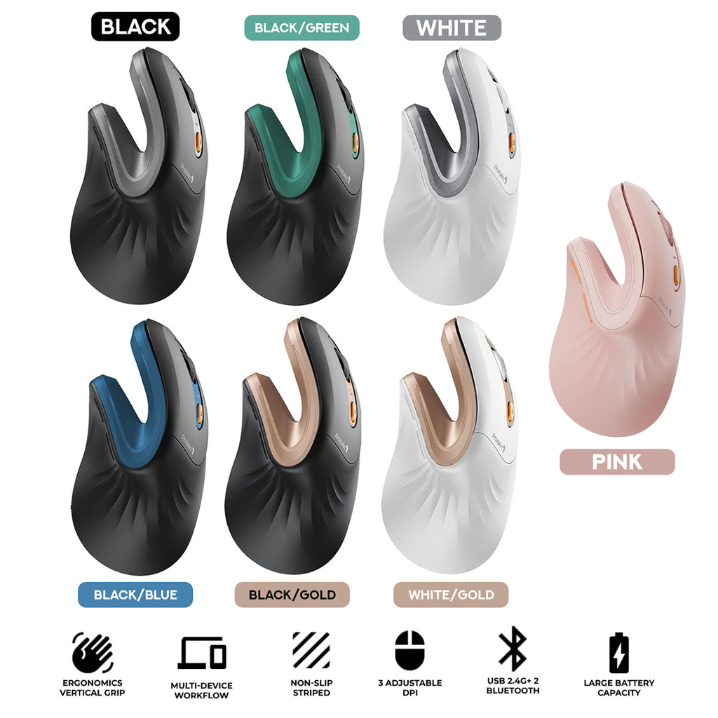 EM11 NL ergonomic vertical mouse features an extended wrist rest that fits snugly in the palm of your hand for a more natural, relaxed position of the forearm and wrist, reducing overall fatigue, compared to standard mice.