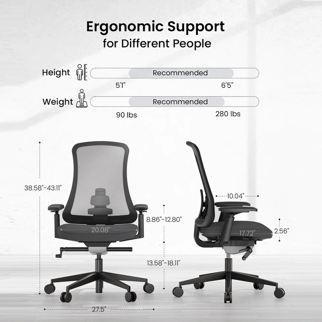 ProtoArc Flexer series pairs breathable mesh with adaptive ergonomics for long-hour focus. Clean lines and a modern silhouette—ideal for home offices and workstations.