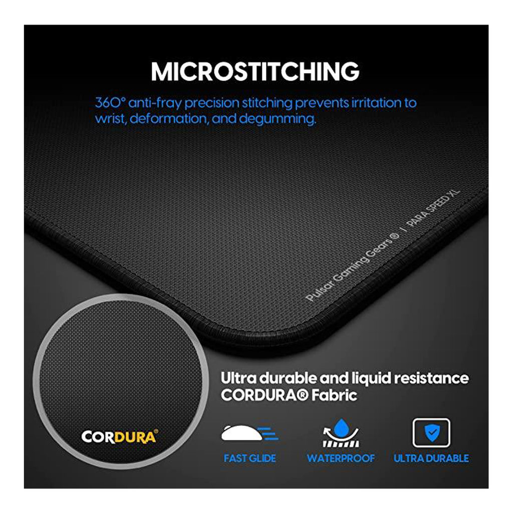 Tightly woven micro-knit stitch is not higher than the surface to prevent irritation to wrists and not to block the motion when performing wide mouse movements. 360° anti-fray precision stitching ensure long-term use without deformation and degumming as well.