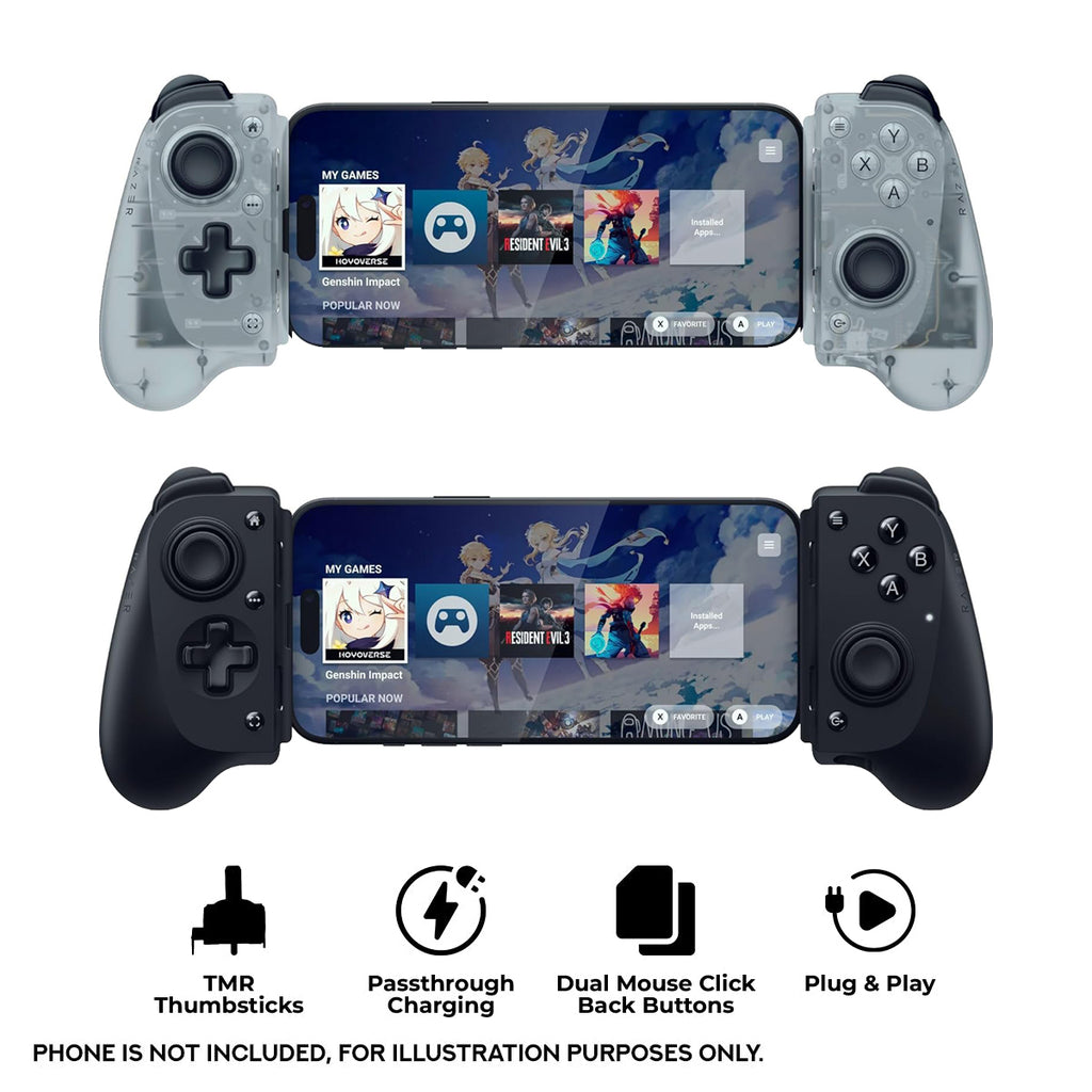 Unlock full-on mobile gaming with the Razer Kishi V3 —a full-sized controller that brings a console-class gameplay experience to your smartphone. Made for iPhone and Android, get the ergonomics and performance of a pro-grade console controller with full-sized TMR thumbsticks and dual mouse click back buttons.