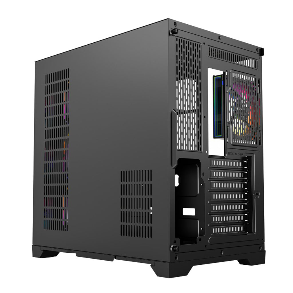 - Panoramic Design with Dual Tempered Glass: Immerse yourself in the beauty of your build through the two tempered glass panels: front and side. Enjoy an unobstructed view of your components and create an impressive centerpiece for your gaming setup.