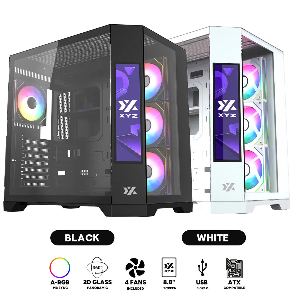 Elevate your gaming setup to the next level with the XYZ NEUTRON. This ATX chassis offers you a panoramic view of your components thanks to its two tempered glass panels, while its dual-chamber design ensures impeccable cable management and optimized airflow.