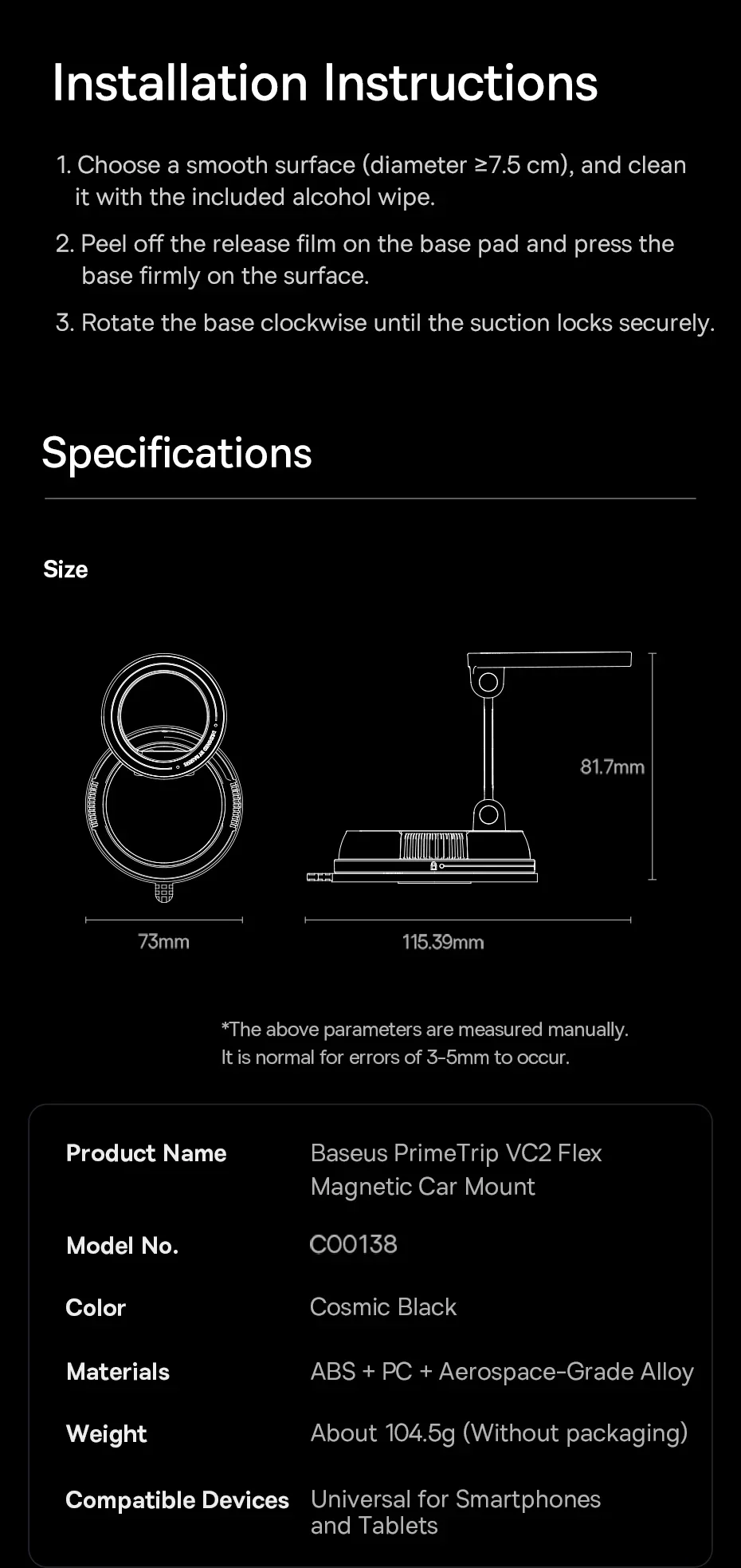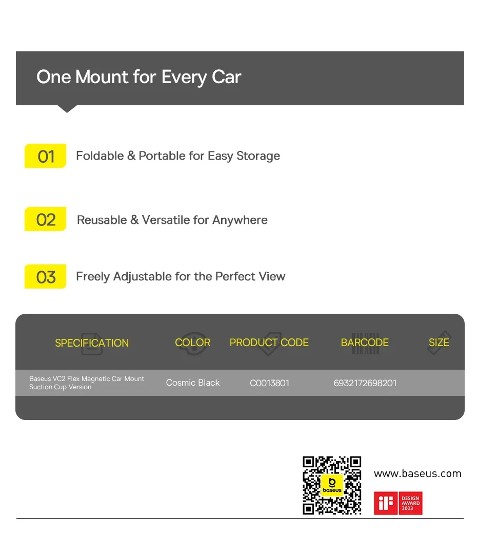Baseus PrimeTrip VC2 Flex Magnetic Car Mount Suction Cup New Version (Cosmic Black) (C0013803)