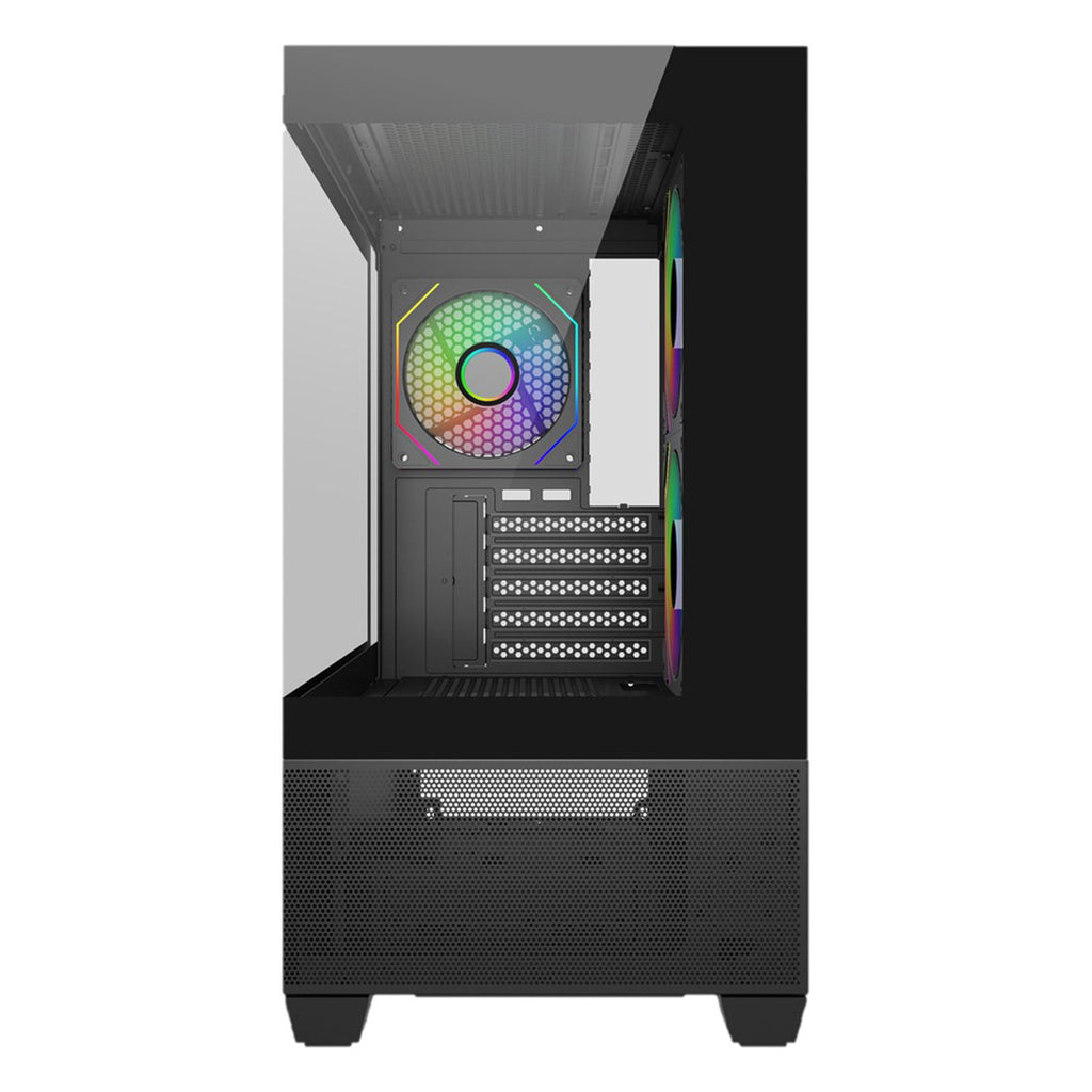 The Elite 490 delivers a clean, modern aesthetic in a space-efficient mATX form factor. Featuring dual tempered glass panels on the front and side, it offers a wide, uninterrupted view of your build’s lighting and hardware. Despite its compact size, the Elite 490 supports full-sized cooling solutions with up to 360mm radiator compatibility and room for 9 fans—perfect for minimalist setups that demand performance.