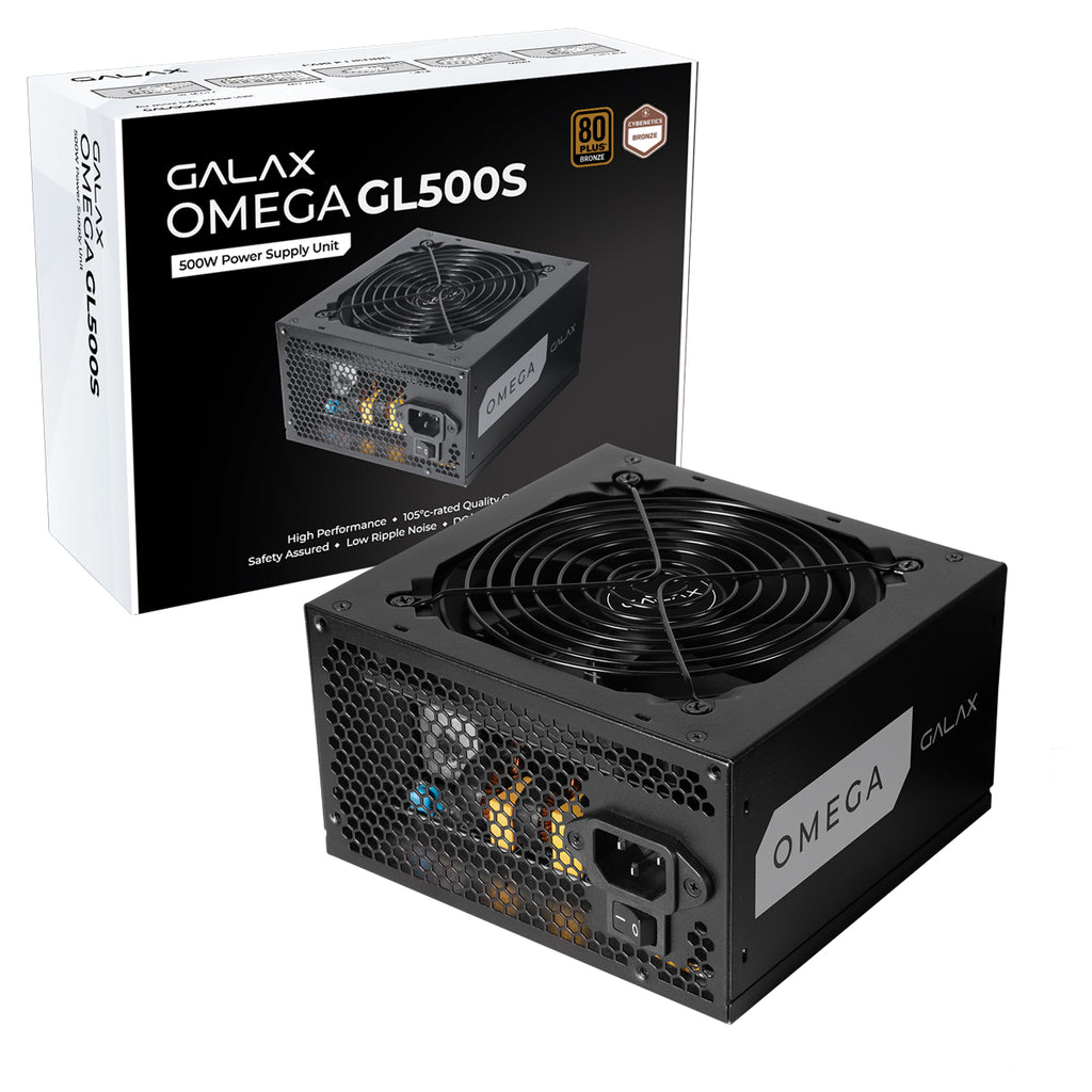 GALAX OMEGA GL500S Non-Modular / 500W / ATX 2.51 / Cybenetics Bronze Endorsed with the prestigious Bronze Efficiency Certifications from Cybenetics, the non-modular OMEGA GL500S offers outstanding performance, efficiency and stability through the integration of 105°C-rated quality capacito...