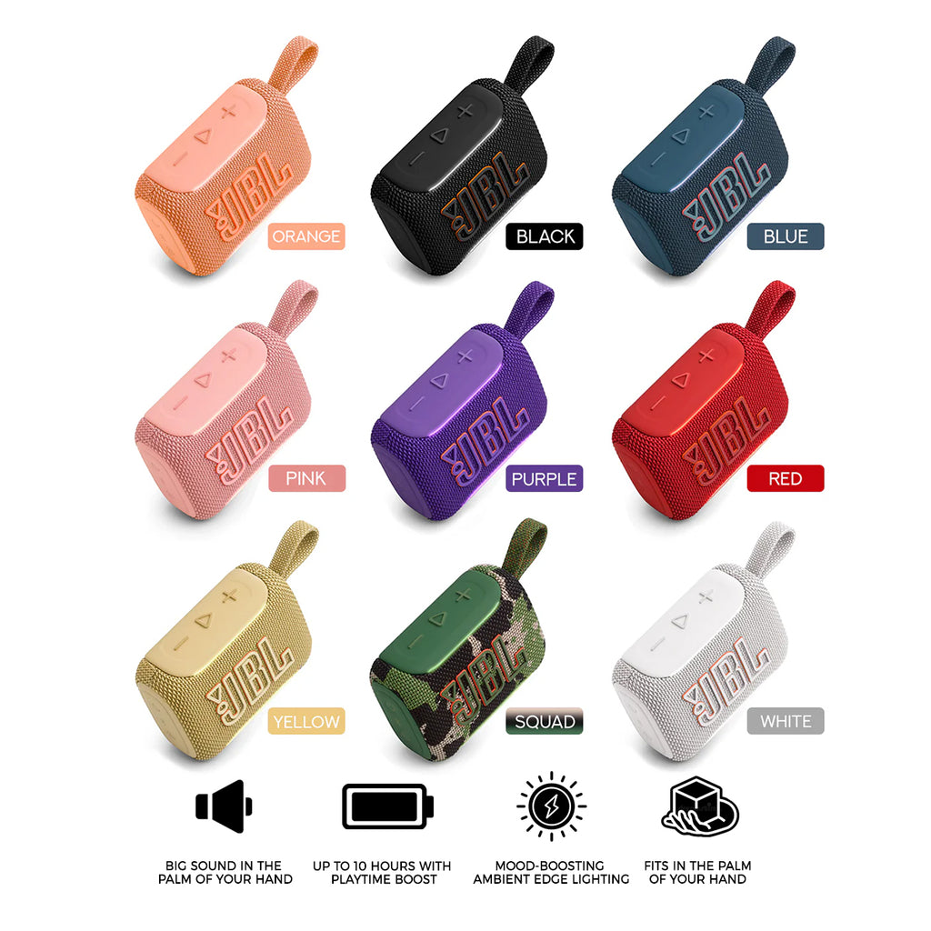 Big vibes, pocket-sized. The JBL Go 5 has serious audio power. Legendary JBL sound shines brightly through crystal-clear details and deep, rich bass that feels louder than should be possible in this palm-sized casing.