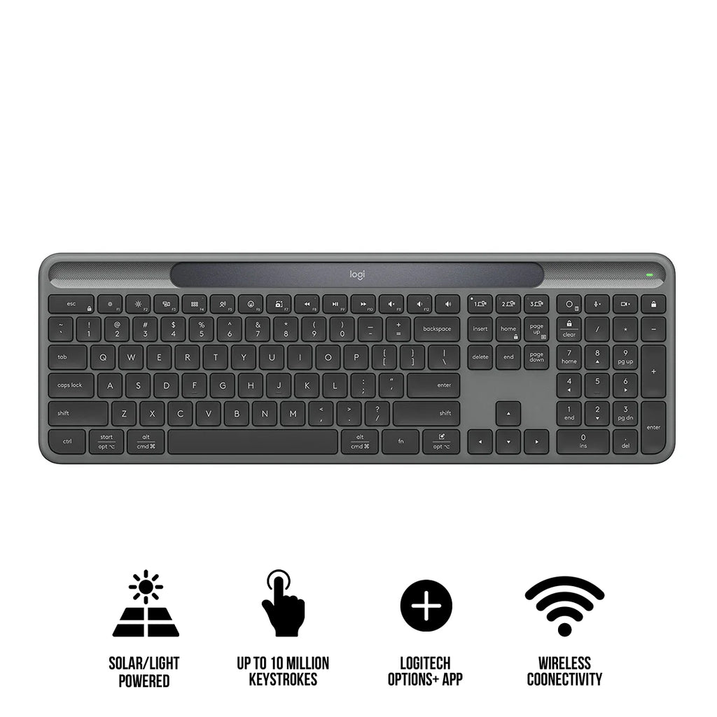 Enjoy the magic of light with a wireless keyboard powered by solar and artificial light that’s always ready, rain or shine. Innovative Logi LightCharge energy management makes Signature Slim Solar+ so easy to keep charged, it’s like magic.