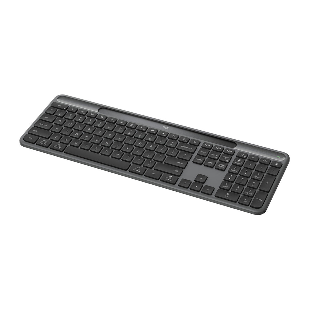 Important | *1) Requires at least 200 lux illuminance. 2) Customizing the device requires the Logi Options+ App, available for recent versions of Windows and macOS at logi.com/optionsplus. 3) Logi Options+ App needs to be installed on all your computers and connected to the same network. 4) Signature Slim Solar+ Keyboard K980 off white recycled plastic content: minimum 52%. Excludes plastic in printed wiring assembly (PWA), and packaging. Signature Slim Solar+ Keyboard K980 graphite recycled plastic content: minimum 70%. Excludes plastic in printed wiring assembly (PWA), and packaging. 5) Wireless range may vary depending on the operating environment and computer setup. 6) Logi Options+ App is currently not supported for ChromeOS, Linux, iPadOS, iOS and Android OS. The device’s basic functions will work without it. 7) With a fully charged battery, battery life varies with use conditions. 8) Mouse not supported by iOS. 9) Actual key switch lifetime varies with use conditions. Projection is based on one million keystrokes per key switch in a year. 10) Lifetime projections are based on results from an 18 months testing conducted by the battery manufacturer. Actual Battery lifetime may vary based on user, environment and computing conditions. 11) Spare parts may not be available in some countries or regions. For more information, please visit www.logitech.com/support/slimsolarplus. 12) Light effects on strip not representative of product operation. 13) Out of the box, the AI launch key opens Microsoft Copilot in Windows or Gemini for ChromeOS if available on your device. Use of these or other AI tools may require a separate subscription/application and minimum operating system requirements. For more details, please visit www.logitech.com/support/slimsolarplus |