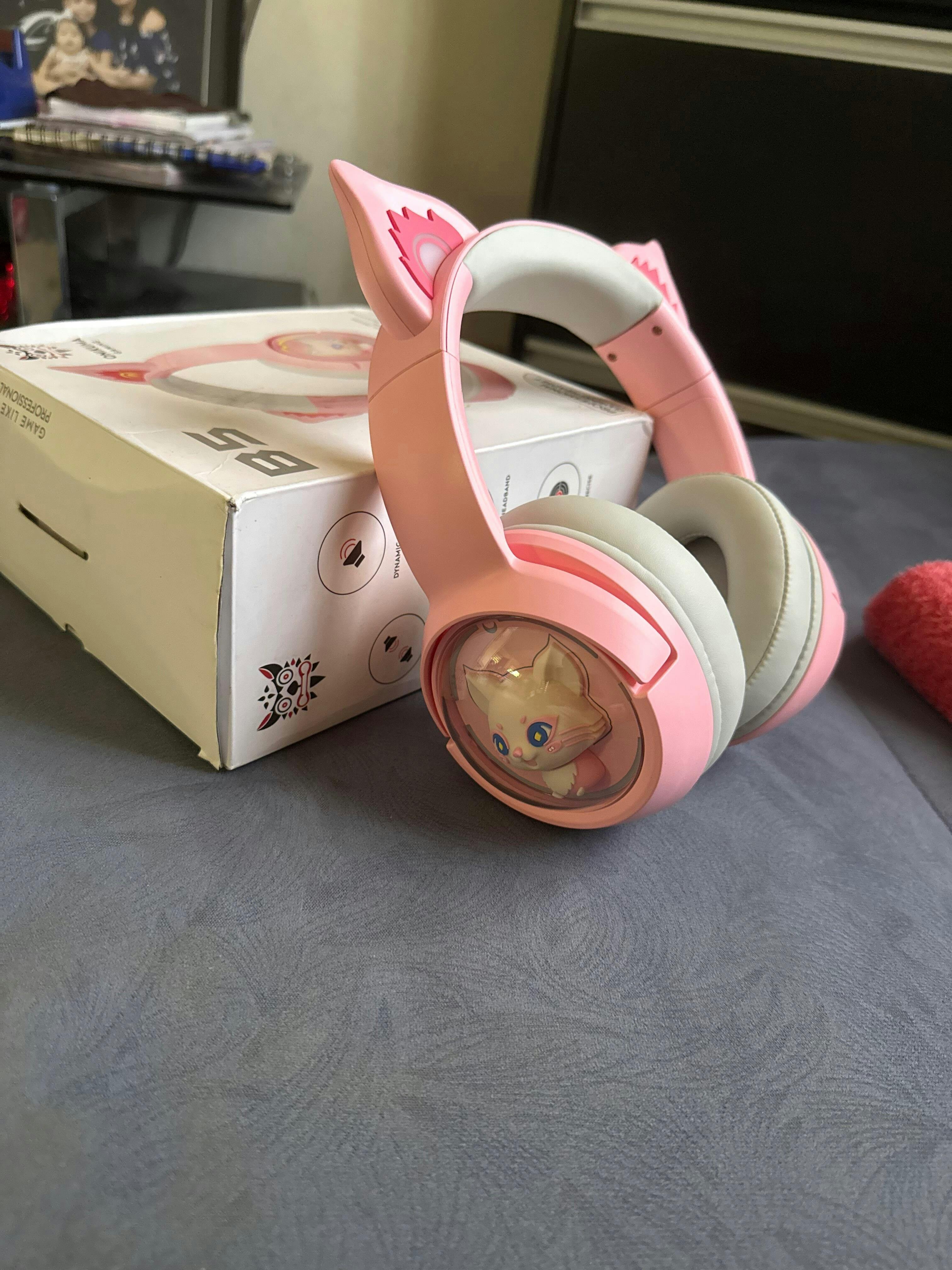 Onikuma B5 RGB Cat Ear Wireless Gaming Headset (White/Blue, Off-White, Pink)