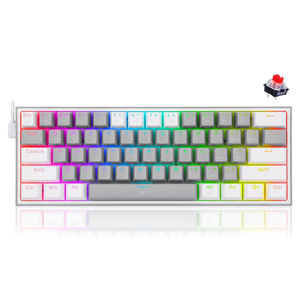 60% Wired & 2 Colors Keycaps: Redragon 60% keyboard in wired mode with fresh 2 colors mixed keycaps layout. Ultra-compact 61 keys with novel keycap color frees up precious desk space with vibrant elements.