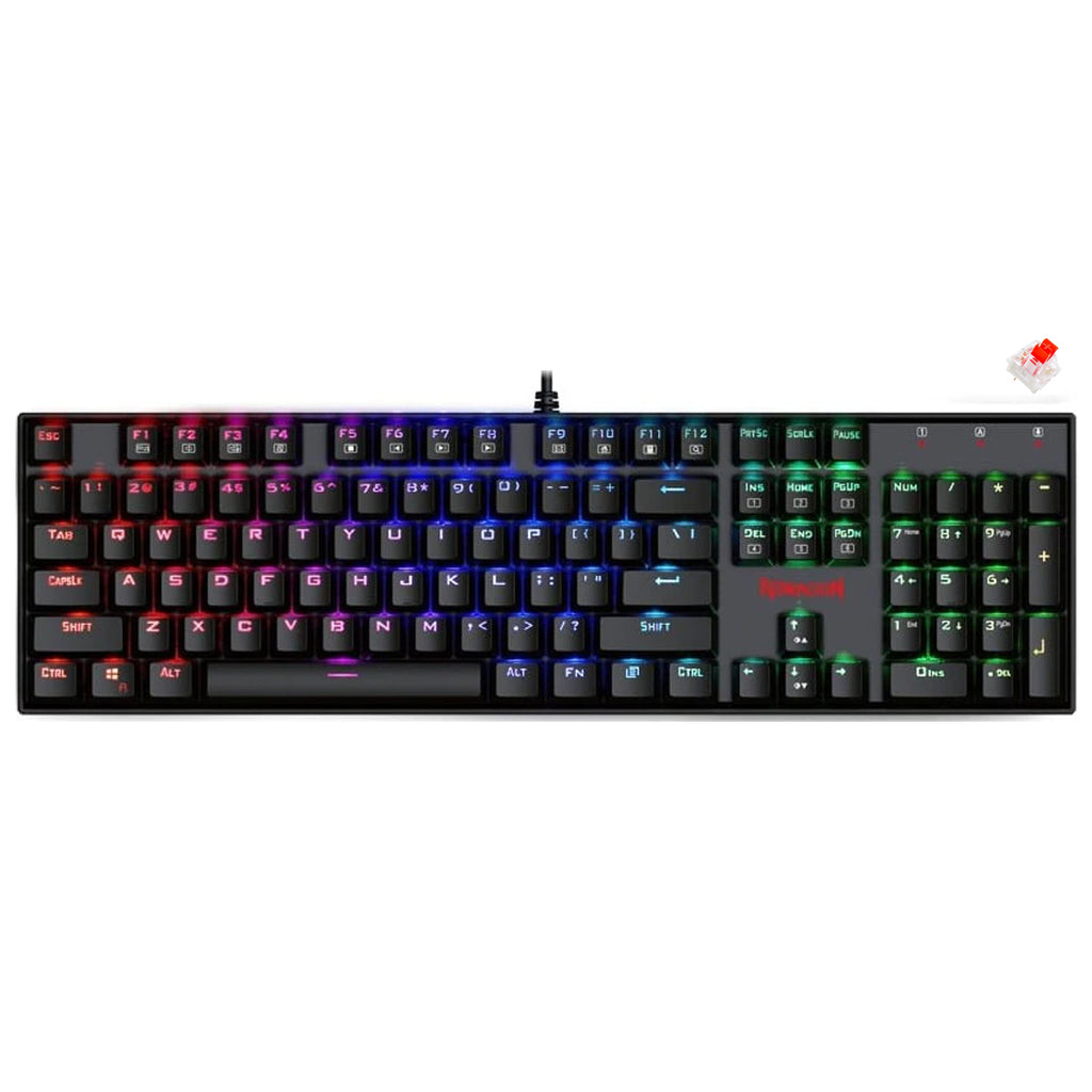 - RGB MECHANICAL KEYBOARD; K551RGB-1 V2 Redragon Keyboard, RGB LED backlit mechanical gaming keyboard, the RGB Led illuminated keyboard comes with Double-shot injection molded keycaps offering crystal clear uniform backlighting and lettering that doesn't scratch off. Featuring rainbow, RGB colors, 5 different lighting modes, 5 backlight brightness levels, breathing speed, user programmable RGB backlighting.
